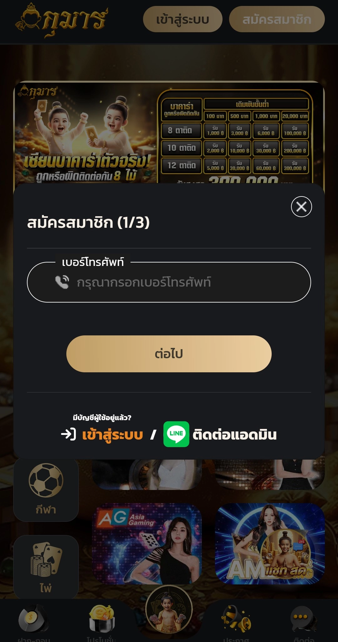 ใส่ เบอร์โทรศัพท์มือถือ จากนั้นกด ต่อไป