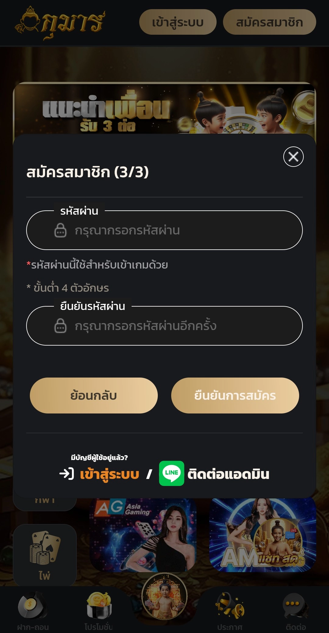 ตั้งรหัสผ่าน (Password) สำหรับเข้าใช้งาน จากนั้นกดยืนยัน ระบบจะสร้างบัญชีของคุณอัตโนมัติและเข้าสู่หน้าหลักของเว็บไซต์ได้ทันที